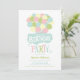 Convite Colorido ao Aniversário de criança dos Balões Pastel. Convite de festas festivo e colorido com balões cor-de-rosa, amarelo, azul e verde aglomerados com tipografias modernas e esquisitas. As cores são perfeitas para festas de aniversário neutras em termos de gênero. Personalize a parte de trás do convite adicionando uma foto, padrões ou qualquer imagem.