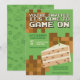 Este design de convite de aniversário para rapazes modernos e legal apresenta um design de jogos com funcionalidades pixelizadas e um pedaço de bolo pixelizado sobre um fundo verde. Pode ser personalizado com o nome, a idade e outros detalhes necessários para a sua festa. Definido como um convite para o 9º aniversário, mas fácil de editar. A adição perfeita à festa da criança que ama o jogo!