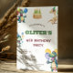 Dinossauros adoráveis e coloridos com balões de aniversário para um convite de aniversário infantil.