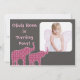 Adorável mas simples convite fotográfico. Excelente para a festa de aniversário de uma menina. O fundo castanho escuro complementa silhuetas elefantes cor-de-rosa giro e padronizadas.