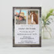 Convite de aniversário resistente e rústico com tema de cavalo ou pônei. Você pode substituir as fotos na frente por suas próprias fotos. O sapato do cavalo está em um arquivo separado e pode ser arrastado ou apagado de acordo com suas necessidades. Linda para uma celebração de fazenda ou celeiro para crianças mais velhas.