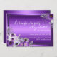 Convite de aniversário. Bonito flores roxas e bule. Zazzle exclusivo.