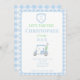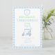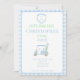 Crianças jogam golfe no convite de aniversário. Imagens pintadas à mão de aquarelas e fundo de gingham.