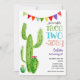 Convide seus amigos e família para comemorar Taco Twos-day para a segunda festa de aniversário do seu filho! Apresentando cactos de aquarela e uma faixa colorida