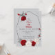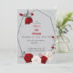 coroa botânica romântica vermelha e branca num convite de aniversário para cinzas