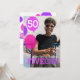 Balão cor-de-rosa e roxo, de lado duplo, 50º convite de aniversário. O convite gráfico de balão brilhante adiciona a foto de sua própria aniversariante e personalize com seus próprios detalhes. Design exclusivo de Sarah Trett.