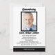 Este simples, mas espantoso, convite de aniversário de morte mostra uma foto do seu amado, borrado em preto sobre um fundo branco. A palavra "Lembrando" aparece acima da foto em um roteiro em negrito. Logo abaixo da foto, está o nome do seu amado em roteiro. As palavras "PERDIDO HÁ UM ANO" aparecem abaixo do nome, mas isso pode ser personalizado. O resto do convite pode ser personalizado para suas necessidades. Abaixo de suas informações personalizadas estão as listras pretas e brancas e as palavras, "PARA SEMPRE AMADO." O verso do convite é preto. Um convite maravilhoso para lembrar seu amado no aniversário da morte.