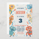 Prepare-se para aumentar a diversão com este adorável convite de aniversário para robôs! Com uma equipe de robôs alegres, do estilo aquarela, a espreitar de todos os lados, esta placa vertical de 5x7 polegadas é perfeita para a celebração inspirada na tecnologia do seu pequeno. Envolvido por engrenagens coloridas, chaves e um centro espaçoso para detalhes da festa, este design é simultaneamente lúdico e funcional. Ideal para meninos e meninas que amam todas as coisas robóticas e futuristas!
