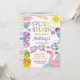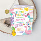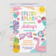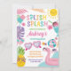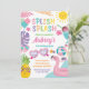 O convite de aniversário da festa de piscina apresenta design colorida e divertida.
