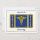 Este convite azul e dourado é decorado na frente com um amassado de ouro caducius. Você pode personalizar este cartão colocando suas informações nas caixas fornecidas.