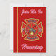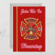 Este convite vermelho do motor de incêndio é decorado na frente com um Crachá do Bombeiro Aposentado Você pode personalizar este cartão colocando suas informações nas caixas fornecidas.
