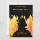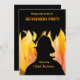 Convite de aposentação único para um bombeiro ou chefe de bombeiros. O design tem um Bombeiro com chamas no fundo e a redação para um convite de festas de aposentação. Fácil de personalizar com os detalhes da sua festa.