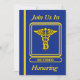 Este convite azul e dourado é decorado na frente com o escudo caduceus do Dentista aposentado. Você pode personalizar este cartão colocando suas informações nas caixas fornecidas.