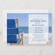 Convite à aposentadoria para amantes de praia. O cartão tem uma cadeira de praia azul e o oceano azul.