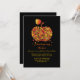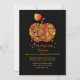 Um convite dramático e sazonal com uma maçã feita de folhas caídas contra um fundo preto. Adequado para qualquer celebração do outono.