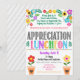 Adorável convite para a apreciação de professor floral/funcionarios. Um excelente convida a mostrar verdadeira gratificação e apreço aos professores funcionarios e escolares!