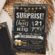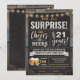Convite para apresentação de aniversário de 21 anos de Cheers and Beers Surprise, com conselho de giz e inscrição com idade personalizável.