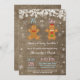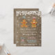 O Natal De Inverno Revela Convite. Floco de neve branco. Ele ou ela. Garoto ou Garota. Rosa e Azul. Homem de Gingerbread de Natal. Fundo Burlap. Campo de Vintage Retro Barn.