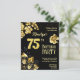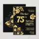 Festa de aniversário das flores pretas e douradas, convite personalizado de aniversário.