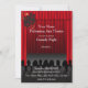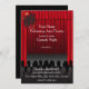 Uma ilustração gráfica de um palco teatral com cortinas vermelhas em um Convite para Apresentação de Palcos de Comédia de Artes Artificiais. Arte original: Copyright Charmaine Paulson