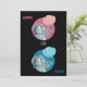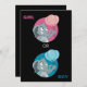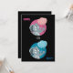 É um menino ou uma menina? Convide seus amigos e família com esses convites personalizados para gênero revelarem festa com ilustrações de pequenos elefantes bonitinhos segurando balões de ar rosa e azul, em fundo negro. Design por Maxi Harmony