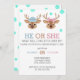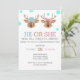 Celebre a chegada do seu pequeno com este encantador gênero de inverno revelador convite. Com duas personagens adoráveis de veados, um menino com uma colmeia azul e uma menina com um arco rosa, este design festivo brinca "Ele ou ela, O que será nosso veado?" Flocos de neve acrescentam um toque sazonal, fazer perfeito para uma celebração de inverno. O convite inclui detalhes de eventos personalizáveis, como data, hora, local e informações de RSVP. Ideal para pais que querem compartilhar este momento empolgante com a família e amigos de uma forma na moda e memorável.