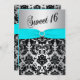 Convite para Aqua, Prata e Black Damask Sweet 16
