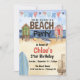 Este convite é para festa de aniversário com tema de praia. Você pode alterar as cores do texto. Você também pode adicionar mais letras clicando em personalizar ainda mais.