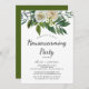 Bem-vindos convidados para a sua nova casa com este elegante convite para o lar. Perfeito para um primavera, apresenta um design floral eterno com marfim e rosas brancas, marfim, e crisântemos, acentuados por delicadas flores azuis de cor azul e folhagem verde.