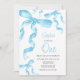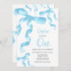 Convite de aniversário com arco de coquete azul-aquarela.