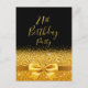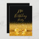 Convite de festas elegante, clássico, glamouroso e feminino. Uma fita colorida de ouro falsa e arco com brilho e brilho de ouro, um pouco de brilho e luxo para um aniversário. Fundo preto. Com o texto: aniversário de 21 anos! na frente Adicione os detalhes do evento na parte traseira.