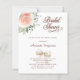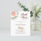 Um fundo branco chic. Decorado com ouro rosa e floral cor-de-rosa pincelado, rosa, verde e arco. Personalize e adicione o nome da noiva a ser e os detalhes da festa. Fundo: fundo rosa. 1 folha = 1 convite impresso de borda a borda.