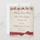 Convite de férias com borda oca, fita elegante e arco em vermelho escuro sobre fundo pontilhado com creme.
