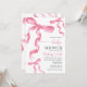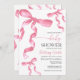 Convite para chá de fraldas com arco de coquete rosa-d'água.