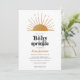 O convite do Baby Sprinkle com metade do sol com raios. Personalize com suas informações para que a mãe esteja. Clique em "clicar para personalizar mais" para alterar o estilo, o tamanho ou a cor da fonte.