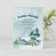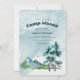 Ataque Verde Azul Lá Fora do Convite de Aniversário. Perfeito para uma festa de camping debaixo das estrelas! Montanhas aquáticas e árvores adicionam ao tema da aventura natureza deste convite.