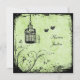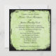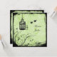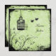 Este convite de casamento verde-pera e preto tem um par de pássaros apaixonados e uma gaiola de pássaros ornamentados em um fundo floral grungente. Se você precisar de qualquer item correspondente neste design, envie seu pedido por e-mail para niteowlstudio@gmail.com.