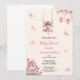 FAIRY PINK BABYSHOWER INVITATION Este design cômico apresenta uma doce ilustração de fadas mágicas da floresta, uma bela casa de cogumelos e elegante blush e flores cor-de-água rosa.