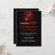 Convite de solteira apresentando um calçado de salto alto vermelho-chic glamouroso em um holofote, mas elegante. Personalize este convite para ter a festa perfeita para a futura noiva.