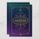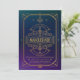 Um belo convite com um fundo roxo e marinho com um quadro de ouro ornamentado. Pequenos detalhes como um candelabro dourado e máscaras de mascarada estão incluídos no design. Este convite foi concebido para bailes de formatura segundos graus, mas a redação pode ser personalizada para ajustado de qualquer evento formal.