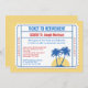 Este convite divertido e atraente é ideal para celebrar uma festa de aposentadoria com um talento tropical. Ele apresenta um design com aparência de passagem com palmeiras e um pôr do sol. Adicione a sua própria redação.