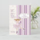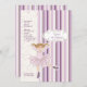 Um convite encantador com uma bailarina de "recorte" contra um fundo de listras roxas e cor-de-rosa sobreposto com um padrão de flores e de coração rebarbados. Perfeito como um convite de aniversário ou um recital de dança.