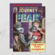 Halloween Convocação em banda desenhada com base em banda desenhada de ouros antigos do dominio público. Traga um gosto do clássico horror dos retratos com este convite único e engraçado. Projetado para se parecer com uma velha escola de quadrinhos horrorosos este retrô convite tem tudo. Na frente está um carteiro de esqueleto entregando o convite para uma horrível dona de casa. Do outro lado está um casal assustado em roupas de banda desenhada antigas convidando seus convidados para um evento tático assustador. Até mesmo as cores do azul roxo e do vermelho acrescentam um toque único ao convite para o evento de Halloween. Facilmente personalizável com os detalhes do local do seu próprio partido.