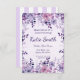 Este convite de jardim de flores silvestres de lavanda é nada menos que um sonho de uma noite de verão que captura o mistério e a tranquilidade de um campo de lavanda e glicínias. Um lindo buquê de flores silvestres roxas e lavanda rodeia fontes elegantes e sofisticadas, tornando este o convite perfeito para o seu jardim, aniversário, chá de noiva, casamento ou chá de bebê. Um fundo com degradê roxo une tudo para uma criação etérea de lavanda que é perfeita para a sua festa!