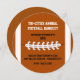 Futebol único O convite para o Banquet foi feito em forma redonda, feito em branco e marrom alaranjado com as listras e costura de uma bola de futebol. Personalize o texto preto e branco para o banquete de prêmios esportivos da escola ou cidade.