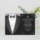 É uma ocasião formal, então, marque o tom desde o início com este elegante design de smoking. Perfeito para o Bar Mitzvahs, bailes de formatura, galas noturnas, ou qualquer caso especial. (FP)