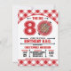 Celebre o Big 8 O com este Convite Barbecue de Aniversário com uma grelha vermelha e um padrão de toalha de gingham. Personalize com seu próprio texto. Ilustração original por pj_design. Contacte-me para obter qualquer ajuda de que necessite.