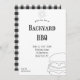 Um convite de churrasco, xadrez, com design simples e moderno. A xadrez branca e preta do lado de trás eleva o convite. Comemore o verão com amigos e familiares, hospedando um churrasco no quintal. Personalize os convites com suas informações com a ferramenta de personalização fácil de usar.