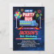 O convite de ônibus do partido VIP para rapazes e raparigas com cores brilhantes do arco-íris e estrelas.