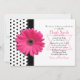 O convite de uma bolinhas branca, preto e branco, gerbera daisy Bat Mitzvah, com a Jewish Star de David. Um padrão de bolinhas preto-e-branco retrô é emparelhado com uma bonito flor rosa-margarida e uma fita simulada. Há uma estrela judaica de David sob a formulação de convite que pode ser removida na ferramenta design se você quiser. Esta design é perfeita para uma garota que ama margaridas e bolinhas! Nota: Este é um design sem nenhum embelezamento em relevo ou em 3D. A flor da margarida está impressa no convite.